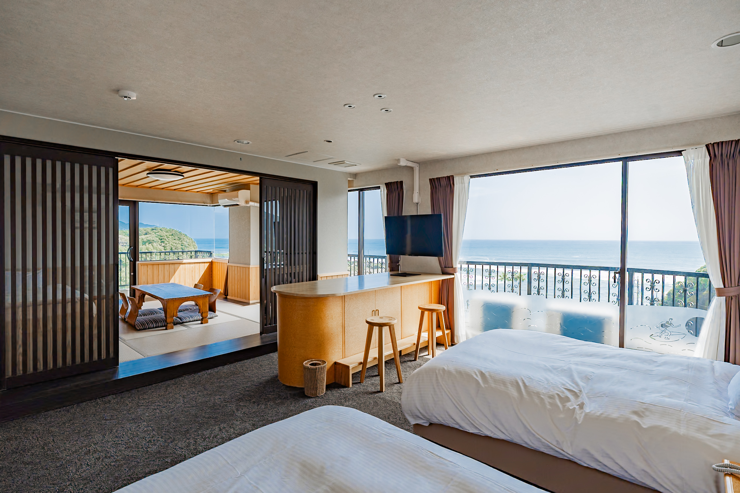 すべての客室が海に面しており、目の前に広がる雄大なオーシャンビューを心ゆくまでご堪能いただけます。この抜群のロケーションで、至福のホテルステイをお楽しみください。